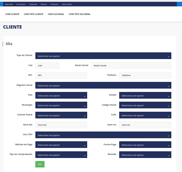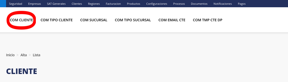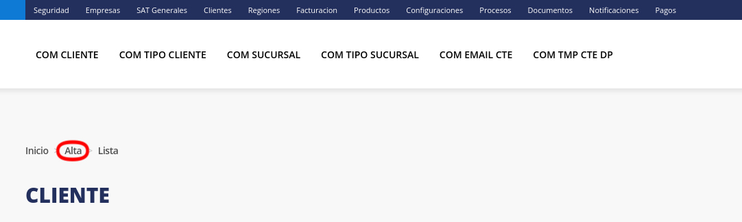 3. Seleccione la opción “Alta" que se encuentra por encima del texto ”CLIENTE".