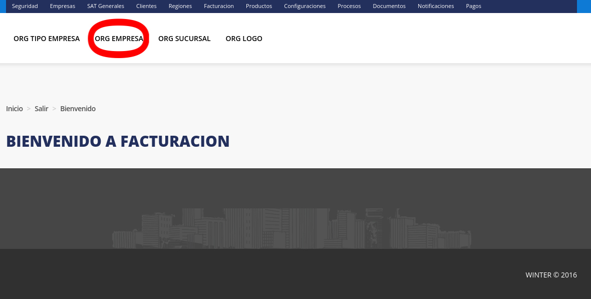 2. A continuación, seleccione la opción “ORG EMPRESA” que se encuentra por debajo de la barra de opciones mencionada anteriormente.