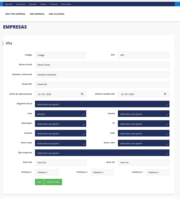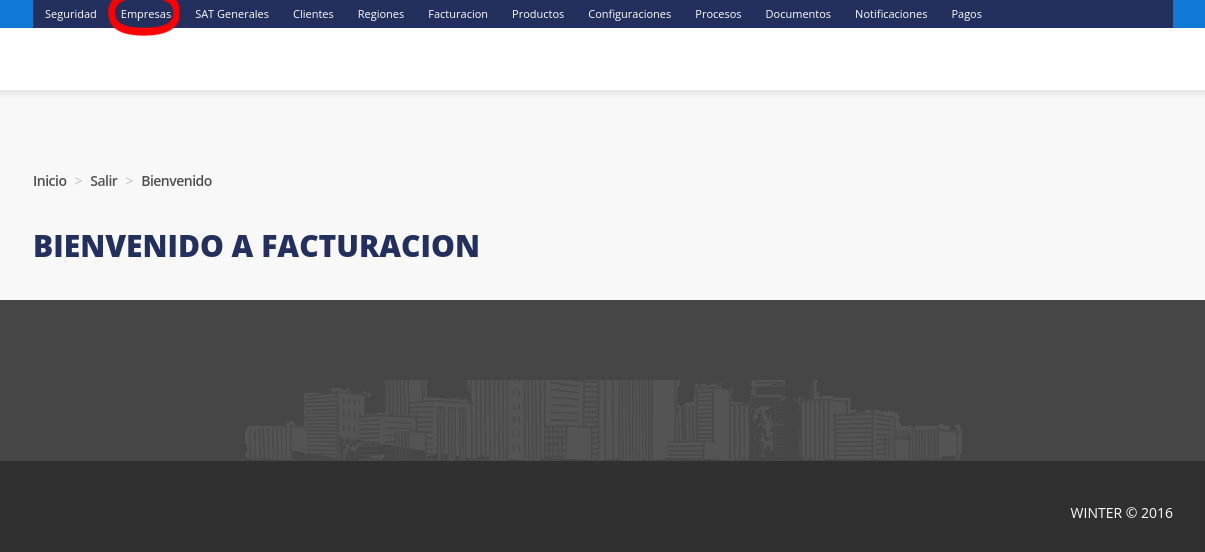 1. Para dar de alta un nuevo emisor, primero deberá seleccionar la opción “Empresas” que se encuentra en la barra de opciones en la parte superior de la página.